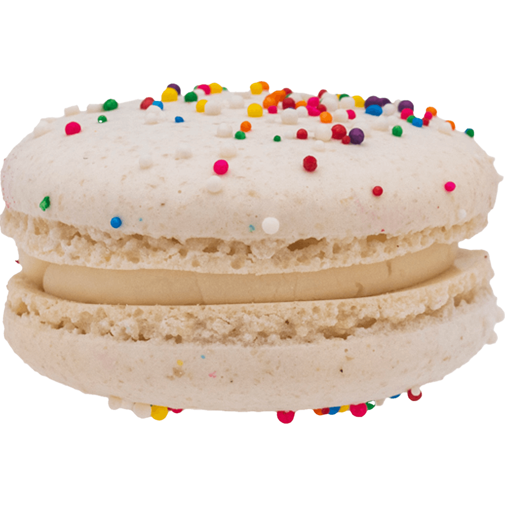 Sugar cookie dough center, creamy vanilla buttercream & sprinkled with rainbow magic. Like biting into pure happiness.