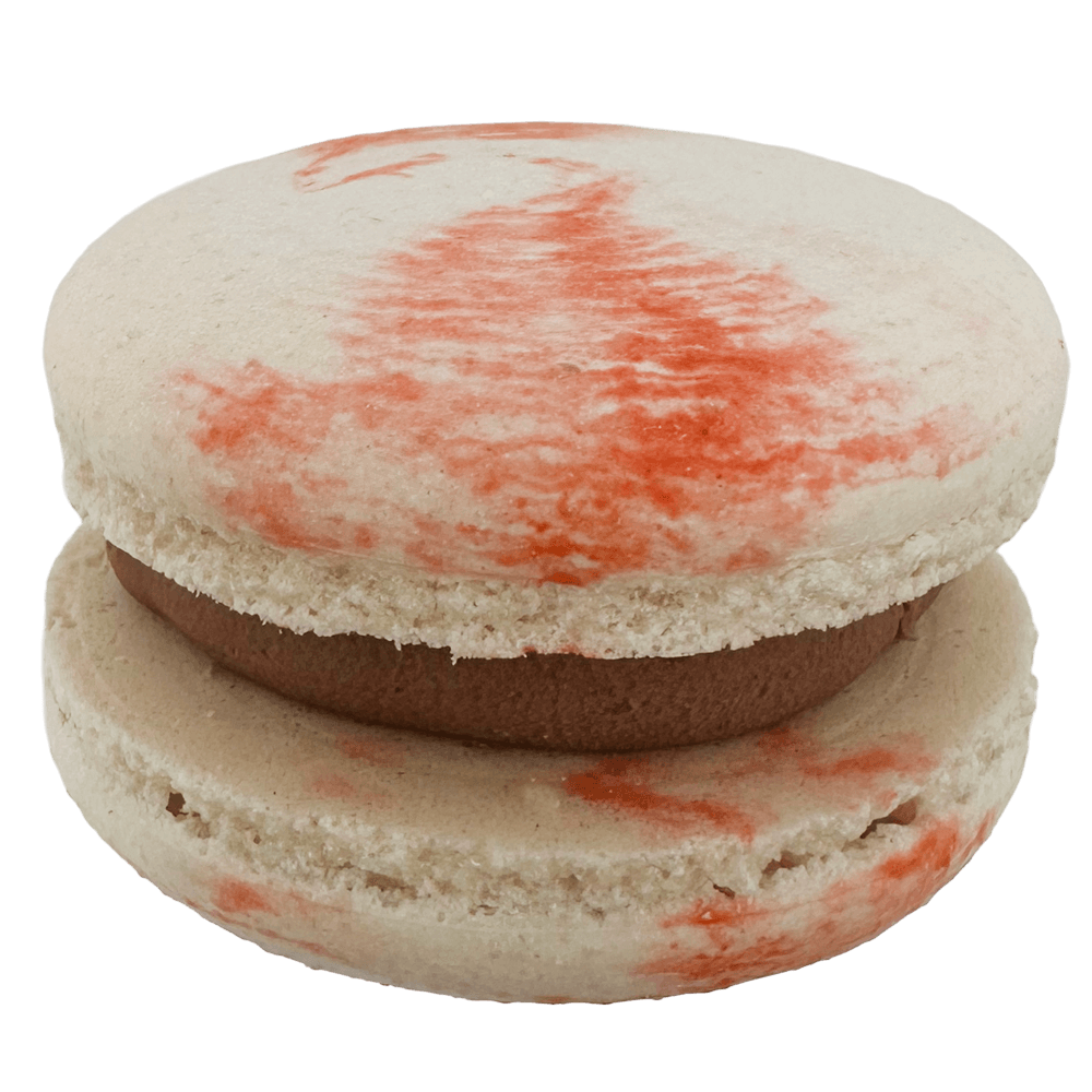 A swirl of red and white decorates a chocolate peppermint inside. Smooth chocolate and refreshing peppermint come together for a perfect winter bite.